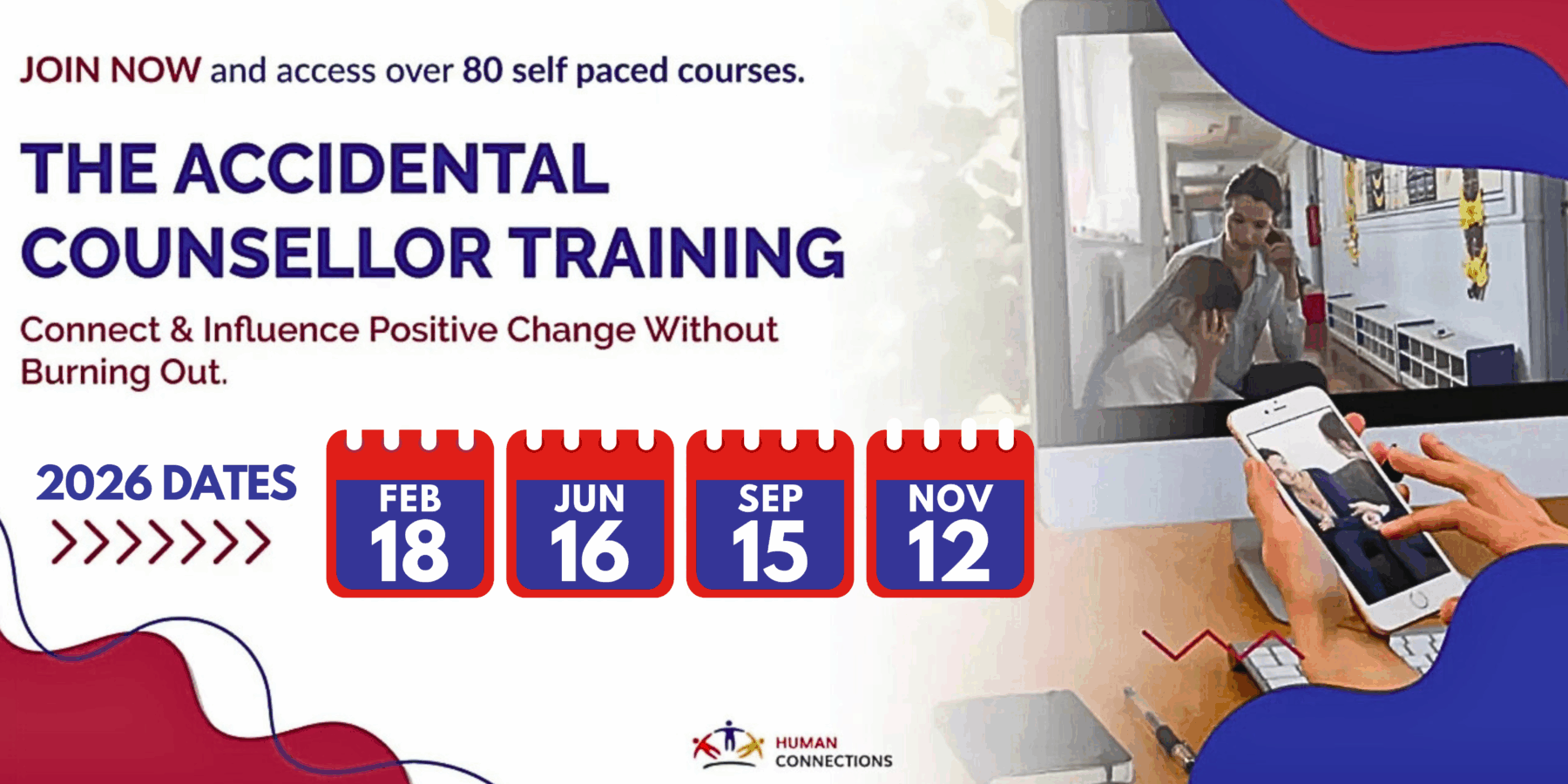 The Accidental Counsellor Training gives you clear, practical skills to respond with care and confidence—without taking on emotional weight you weren’t trained for.